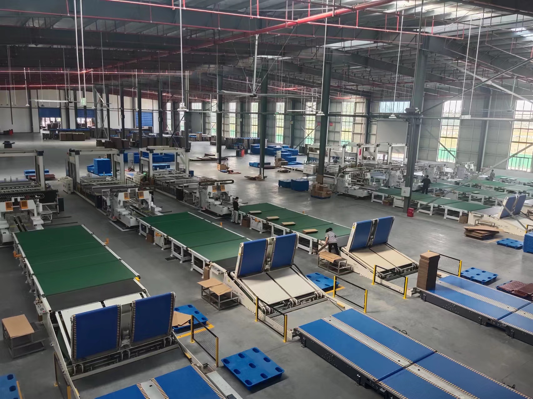 中泰集团成立于1998年,是珠三角地区知名的瓦楞纸板纸箱生产制造企业,集团总部位于广东省江门市,于2022年投资建立湖北中泰智能包装有限公司,该项目位于湖北省孝感市汉川市国家级经济技术开发区,区位优势明显,产业配套成熟,物流交通便利。 项目总占地面积200亩,计划总投资5亿元,分两期建设。其中一期投资3.5亿元,占地面积155亩,于2023年3月开工,2023年12月正式投产。纸板车间投入德国2.8米BHS高速瓦楞纸板生产线1条、京山2.5米高速瓦楞纸板生产线1条。纸箱车间投入高速水墨印刷机5台及高速联动线2条、高清数码打印机1台(配套自动开槽机)、自动粘钉一体机2台、全自动糊箱机2台、自动平压平模切机2台、全自动高速碰线机1台,并配套全厂智能物流系统。二期项目计划2025年开工建设,占地面积45亩,预计投资1.5亿元,项目全部竣工投产后,预计年产3亿平方米纸板纸箱,实现总销售收入8亿元。